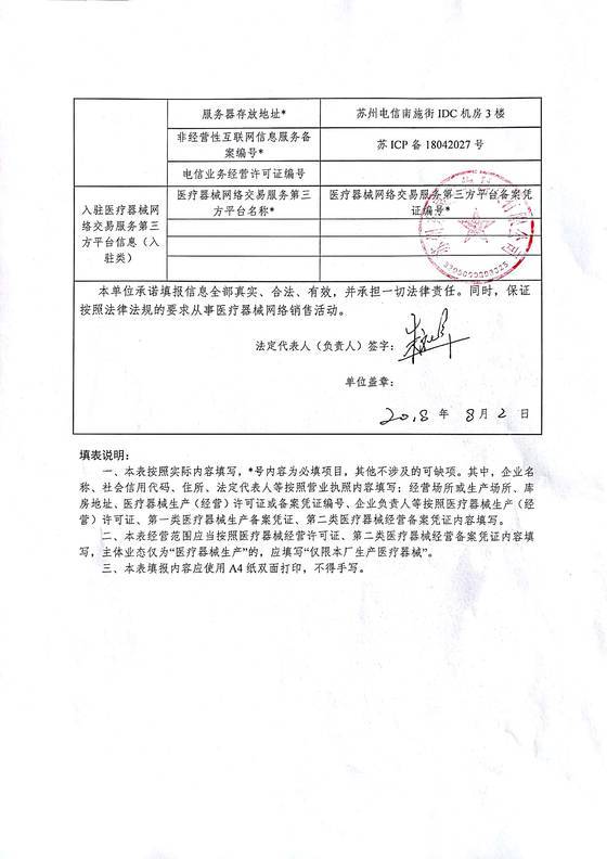 醫(yī)療器械網(wǎng)絡(luò)銷(xiāo)售信息表反面